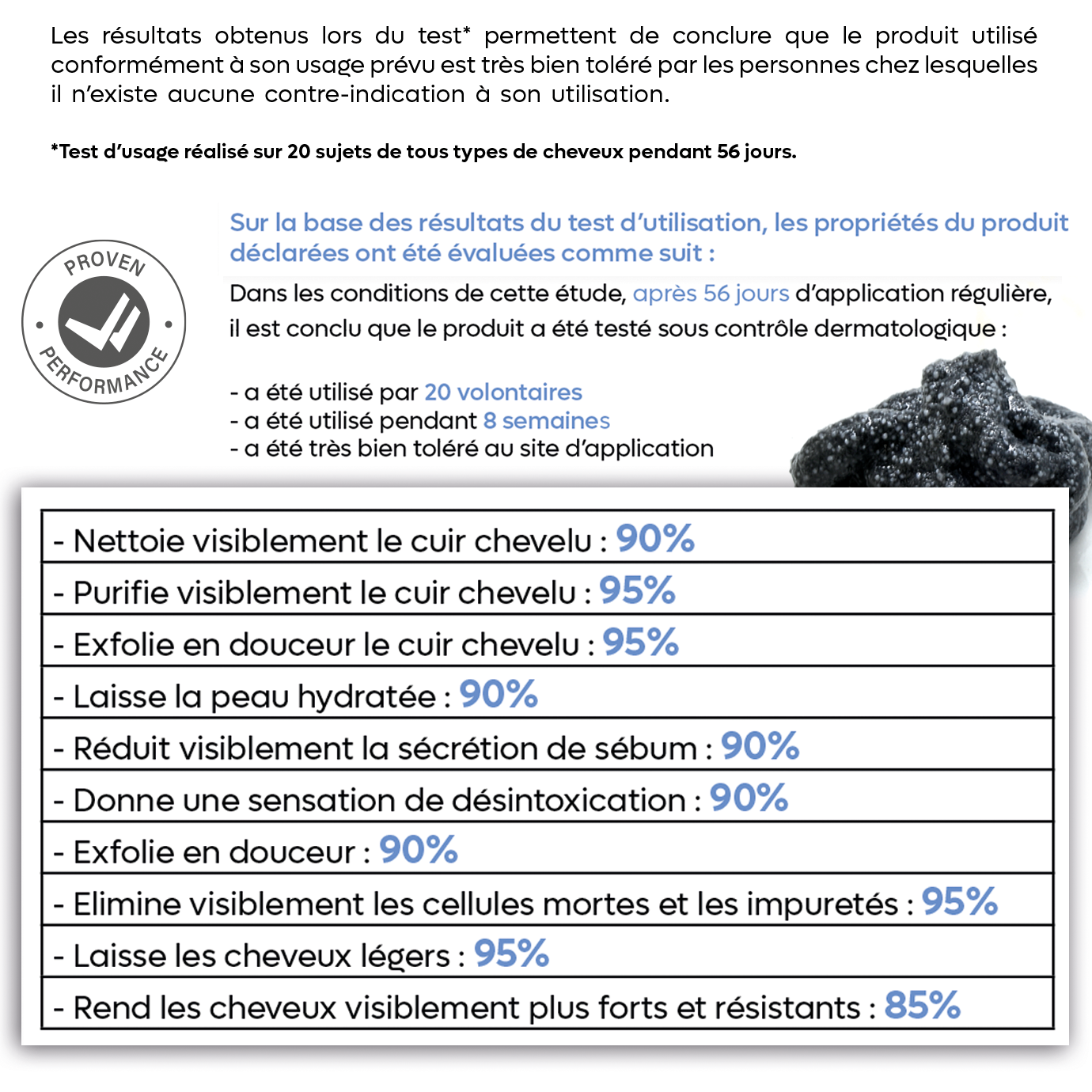 Mode d’emploi : Sur cheveux mouillés, appliquer une noisette du shampoing exfoliant. Puis masser doucement le cuir chevelu pour exfolier. Rincer abondamment.