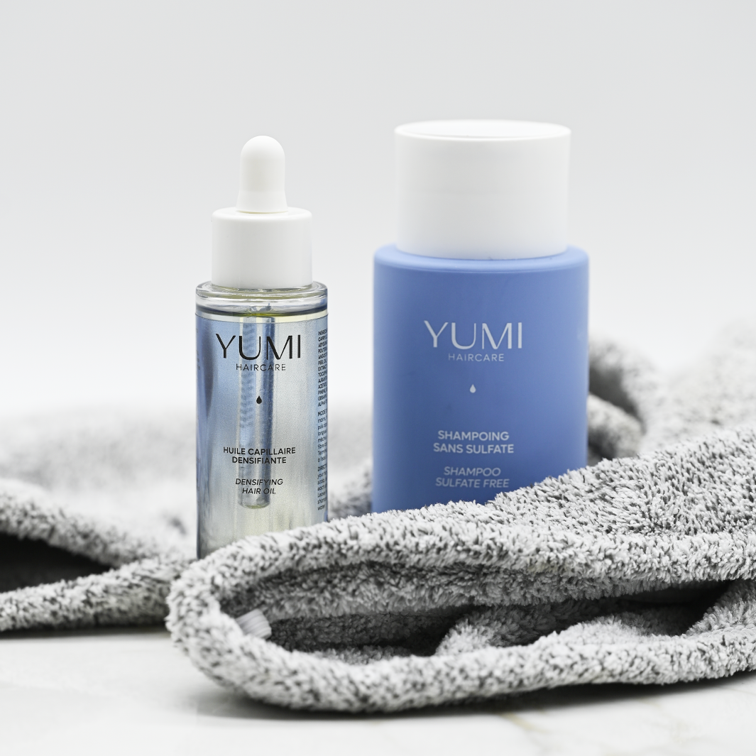 Pour maximiser ses bienfaits, appliquez l’huile capillaire densifiante en soin avant-shampoing puis rincez avec le shampoing sans sulfate YUMI. Ce duo expert agit en synergie : le shampoing doux prolonge l’action fortifiante de l’huile et laisse les cheveux propres, plus résistants et pleins de vitalité.